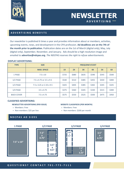 To submit your ad or to discuss options contact advertise@ndcpas.org